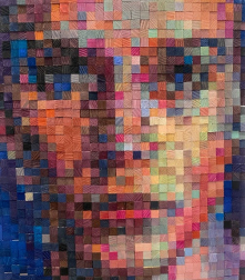 Ihre Gesichtspunkte können objektiv sein, basierend auf Fakten – oder subjektiv, geprägt von persönlichen Meinungen und Erfahrungen. Die Vielfalt der Gesichtspunkte ist eine Stärke, aber auch eine Herausforderung, da sie zu unterschiedlichen Schlussfolgerungen führen kann. Verschiedene Blickpunkte und Sehweisen ergeben sich bei der räumlichen Bewegung. Der Gesichtspunkt ist Betrachtungsweise, Perspektive und Standpunkt. Auch die gestickten Kreuzstiche wandeln sich, aus der Ferne betrachtet, zu einem “digitalen” Bild aus Pixeln. Zu einem Portrait. Es spielt mit Nähe und Distanz. Wechselt zwischen dem Analogen und Digitalen. Anstatt kontinuierlicher Farbübergänge wie in herkömmlichen digitalen Bildern, bestehen diese aus sorgfältig platzierten einzelnen Pixeln mit reduzierter Farbpalette. Wie selbstverständlich setzen wir es zu einem Bild zusammen.