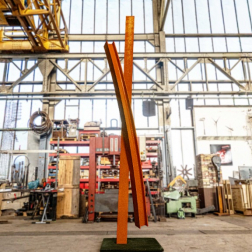 Georg-Friedrich Wolf (*1962 in Freiburg) ist ein deutscher Stahlbildhauer. Seine künstlerischen Schwerpunkte sind monumentale Installationen mit dem Werkstoff Stahl zu zeitgenössischen Themen. Wolf setzt sich seit Jahrzehnten mit der Bearbeitung von Stahl auseinander: ob Schweißbrenner, Hydraulikpresse oder Lasercut, er ist mit allen Techniken vertraut. Wenn er an seinen Skulpturen arbeitet, ist er mit vollem physischem Einsatz am Werk; er performt die Skulptur. Wolfs Stahlskulpturen verraten unmittelbar nichts vom Leben des Künstlers. Der Stahlbildhauer verschwindet hinter seinem Werk, der rein abstrakten Form. Und dennoch sind es sehr persönliche Arbeiten. Seine Werke handeln von der Polarität, von Fortschritt und Scheitern; hinterfragen unseren Umgang mit der Natur und dem Universum.