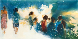 Etwas von der Flüchtigkeit unseres Lebens ist in den Stadtszenen von Renata Tumarova (*1979) enthalten. Sie setzt sich intensiv mit Gesten, Haltungen, Konstellationen und dem Licht auseinander. In ihrer Malerei reduziert sie radikal – ihre Bilder muten auf den ersten Blick beinah unvollendet an, bringen dabei Ungesehenes, Verborgenes oder Vergessenes zum Vorschein.