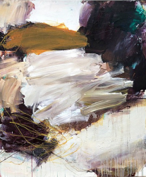 in Ihren Arbeiten verschiedene Aspekte unserer Zeit. Unschärfe, Überlagerungen, Schichtungen lassen entfernt an zerklüftete raue Landschaften und Gewässer denken. Fließende Farben und zerrissene heftige Gesten sind eine Metapher für das Auflösen und Verschwinden des Bekannten.