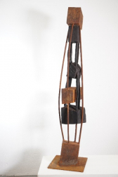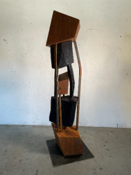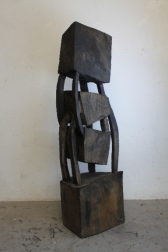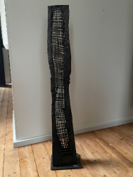 Die Skulpturen von Armin Göhringer beeindrucken schon allein durch ihre Oberfläche: Die Holzobjekte werden mit Kettensäge und Brenner bearbeitet. Durch die Kombination der massiven, schwarzen Blöcke mit filigranen Gestängen sowie Gitternetzen entsteht eine spannungsreiche, abstrakte Formensprache. In seinen Arbeiten setzt sich der Künstler mit den Eigenheiten des Materials auseinander. „Holz evoziiert Empfindungen, egal in welcher gedanklichen Richtung.“ Er sehe seine Arbeiten als Selbstbildnisse an, betont der Künstler immer wieder.