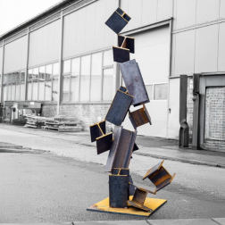 GEORG-FRIEDRICH WOLF (*1962 in Freiburg) is a German steel sculptor. His artistic focus lies on monumental installations with the use of steel based on contemporary themes. Wolf has been exploring the processing of steel for decades: whether using a welding torch, hydraulic press or laser cut, he is familiar with all techniques. When he creates his sculptures, he is working with full physical commitment; he performs the sculpture. Wolf's steel sculptures do not immediately reveal anything about the artist's life. The steel sculptor disappears behind his creation, the purely abstract form. And yet they are very personal works. His pieces deal with polarity, progress and failure; they scrutinise our relationship with nature and the universe.